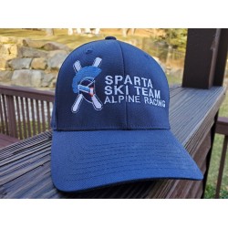Classic navy beanie with three white stripes and embroidered Sparta Ski Team logo on the front of the hat. A playful two-tone pom pom provides the per..
